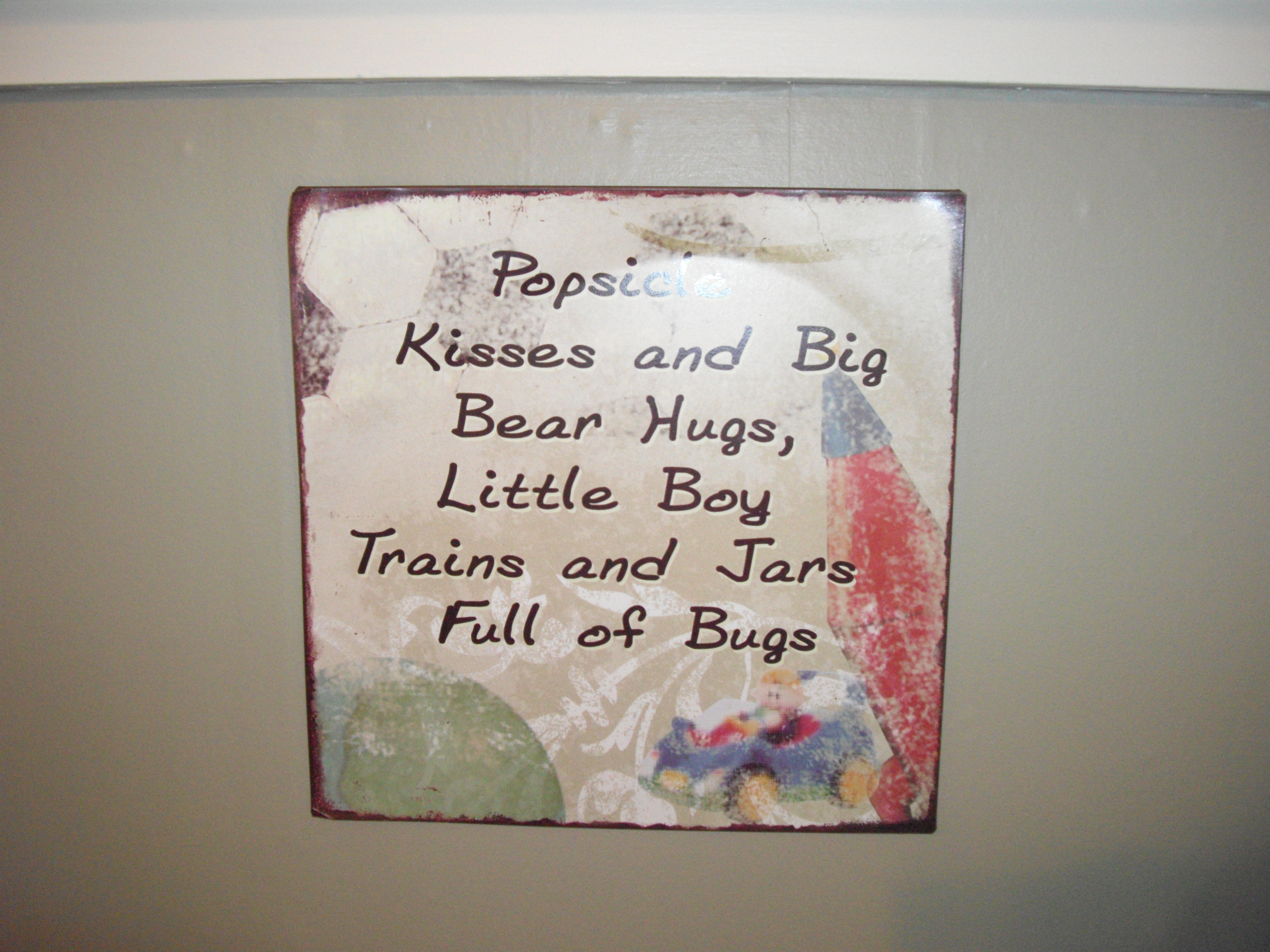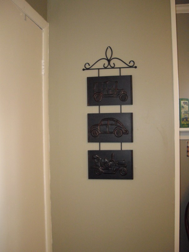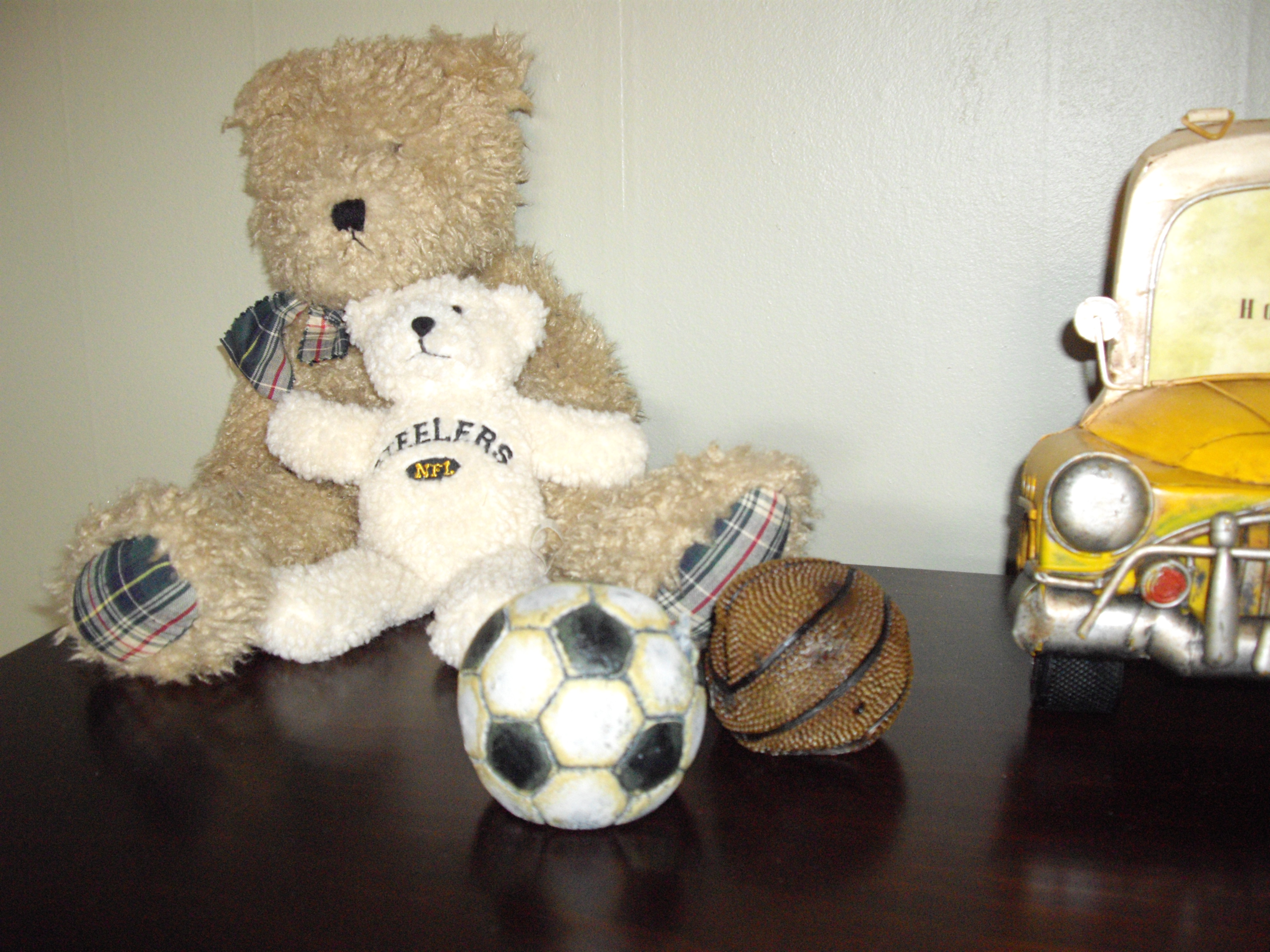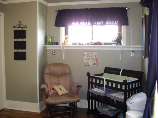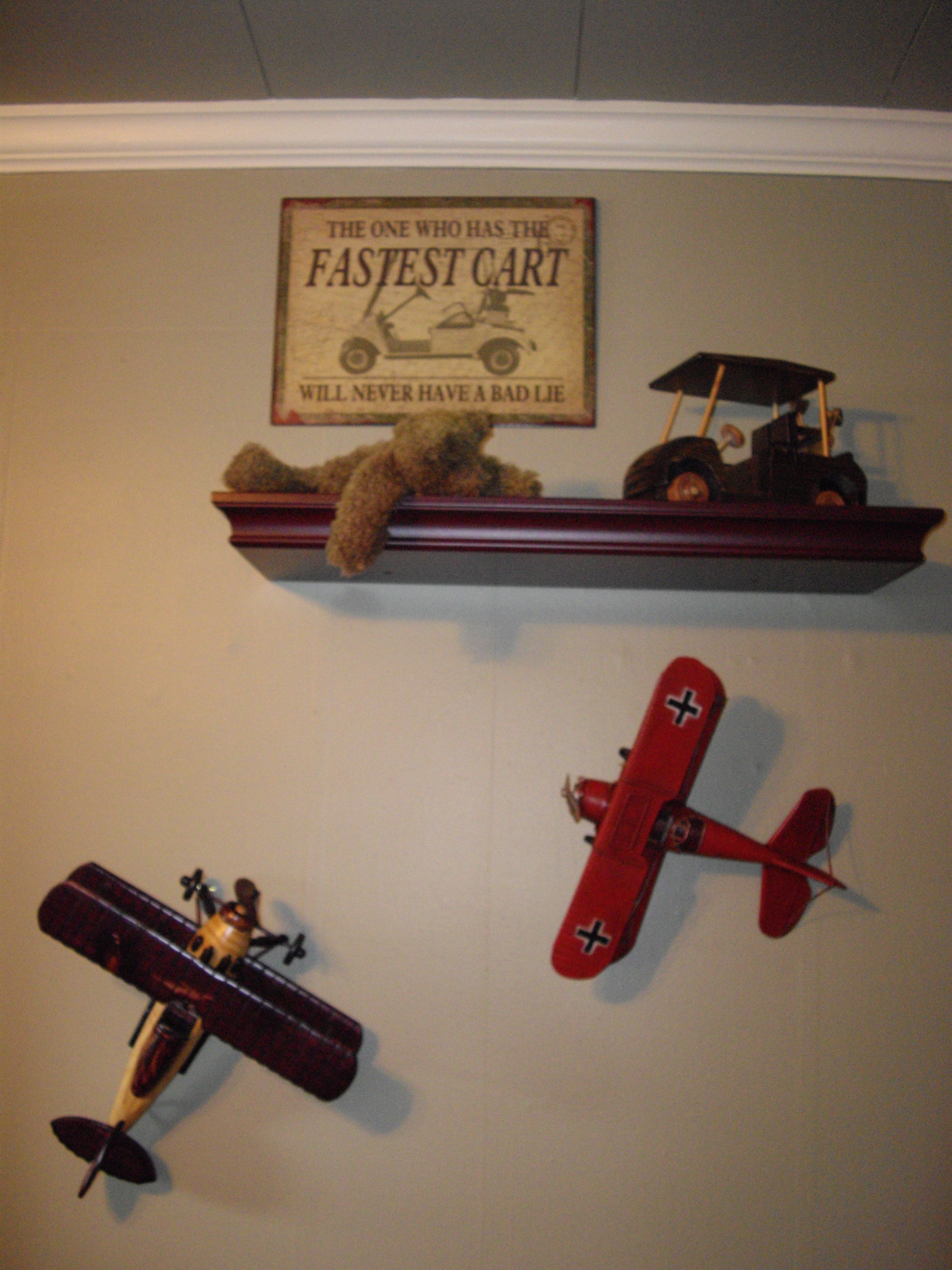 Just because it’s so cute, I thought I’d give you a look at my nephew, Dominic’s, nursery even though it’s not even in my house! My mom decorated the nursery. Most of the décor is from the Hobby Lobby, I just kept piling stuff in my cart (don’t you love spending other people’s money?!). The theme is antique toys. Mostly you’ll see sports and mobile related things. These photos were taken before the room was entirely complete so there are probably a few details missing. I think it’s adorable.