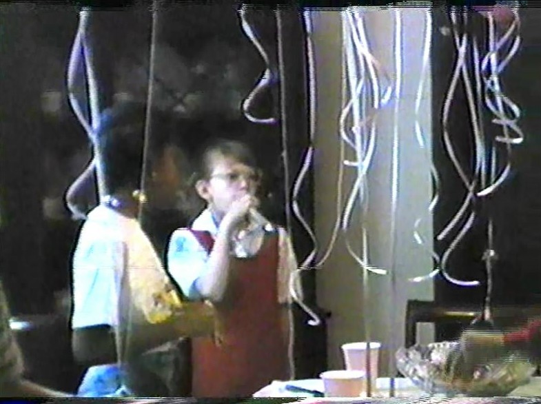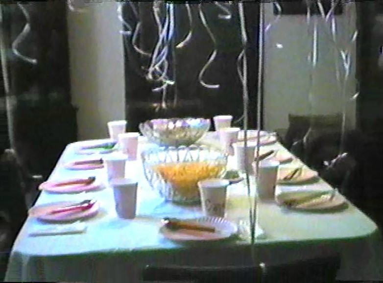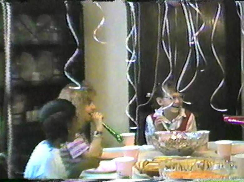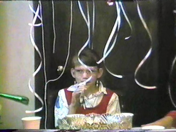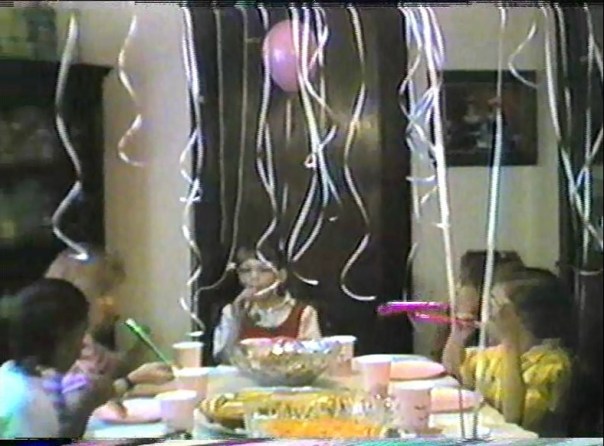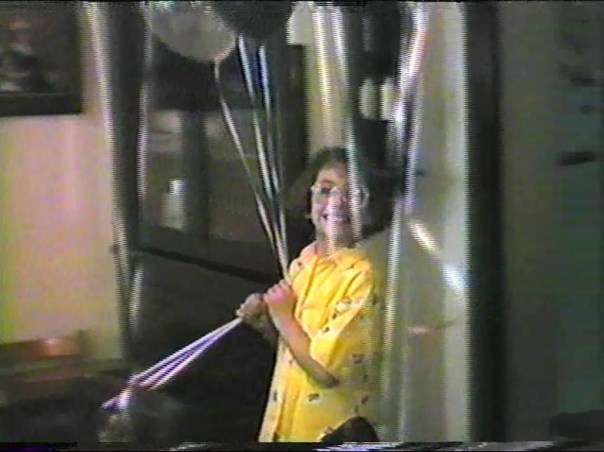 The accidental theme of the party was “J”. The table is set for 10, but there were only 6 of us in the video. It’s possible that more guests came later when we weren’t videotaping, but considering that we were eating cake without those guests…they must’ve been terribly late. Out of the 6 girls that were in the video their names were Jenny (me), Jessie (my sister), Jayna, Julie, Jamie, and Jonalyn. We all had “J” names! I don’t know who the other 4 guests should’ve been, but I’m guessing their names didn’t start with “J” as well. My mom had everyone’s names written on their paper cups and I could almost read one name that said Cara or Cate. Um, I don’t know anyone by those names. While I don’t have a vivid memory of my 10th birthday party, I do have a pretty good grasp on the year as a whole. I didn’t have any friends by those names and I don’t recall having anyone by those names in my class either. Oh well. Whoever you are Cara/Cate, boo on you for saying that you would come to my 10th birthday party and then not showing up. I have obviously blocked you out on purpose because you hurt me so.