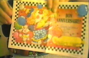 Before getting into the riveting party details I have even more exciting nonsense for you. At the beginning of the VHS I sit down confessional/vlog style and tell in great detail every aspect of my actual birthday the day before. I even read straight from my diary. If I mentioned a card or a gift…I then show it to the camera.