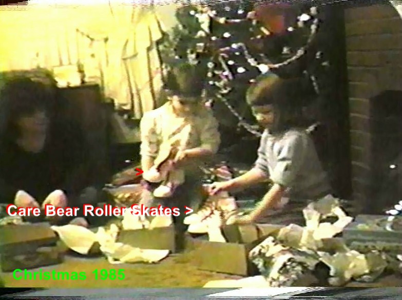 I’m not sure how old I was when this happened, but I have a guess. For Christmas 1985 my sister and I received Care Bear roller skates from our Aunt Julie. It was obviously summertime if we were playing outside. Considering how quickly children’s feet grow, I assume that the summer of ’86 and maybe ’87 would’ve been the only opportunities we would’ve had to wear and use said skates. Obviously mad deduction skills are another superpower of mine. Don’t be jealous.