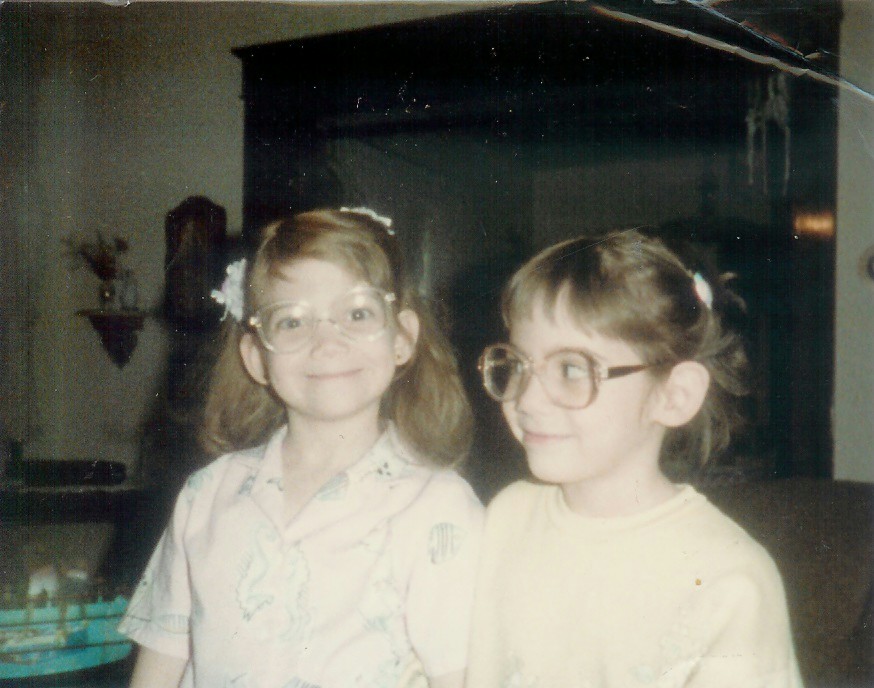 Another new thing that happened that year was my sister and I getting eye glasses. I actually kinda wanted glasses and I’m not sure why. Now I really wish I never had to get them! My sister and I are nearsighted so we couldn’t see the blackboard far away. We were supposed to only wear our glasses when we had to look far away and keep them off the rest of the time. This proved to be very inconvenient with the constant on/off…so we usually just wore them all of the time. I’m not sure whether or not that’s what made our eyes worse, but it didn’t take long before my sister and I had to wear our glasses all of the time. They continued to get steadily worse. Forget nearsighted. Now I can only see an inch in front of my face without glasses/contacts. I don’t know if bad eyes are hereditary but our parents didn’t wear glasses and our grandparents only wore reading glasses. The only other relative we had with eyes as bad as ours was our Aunt (you can see a photo of her awesome 80s specs here).