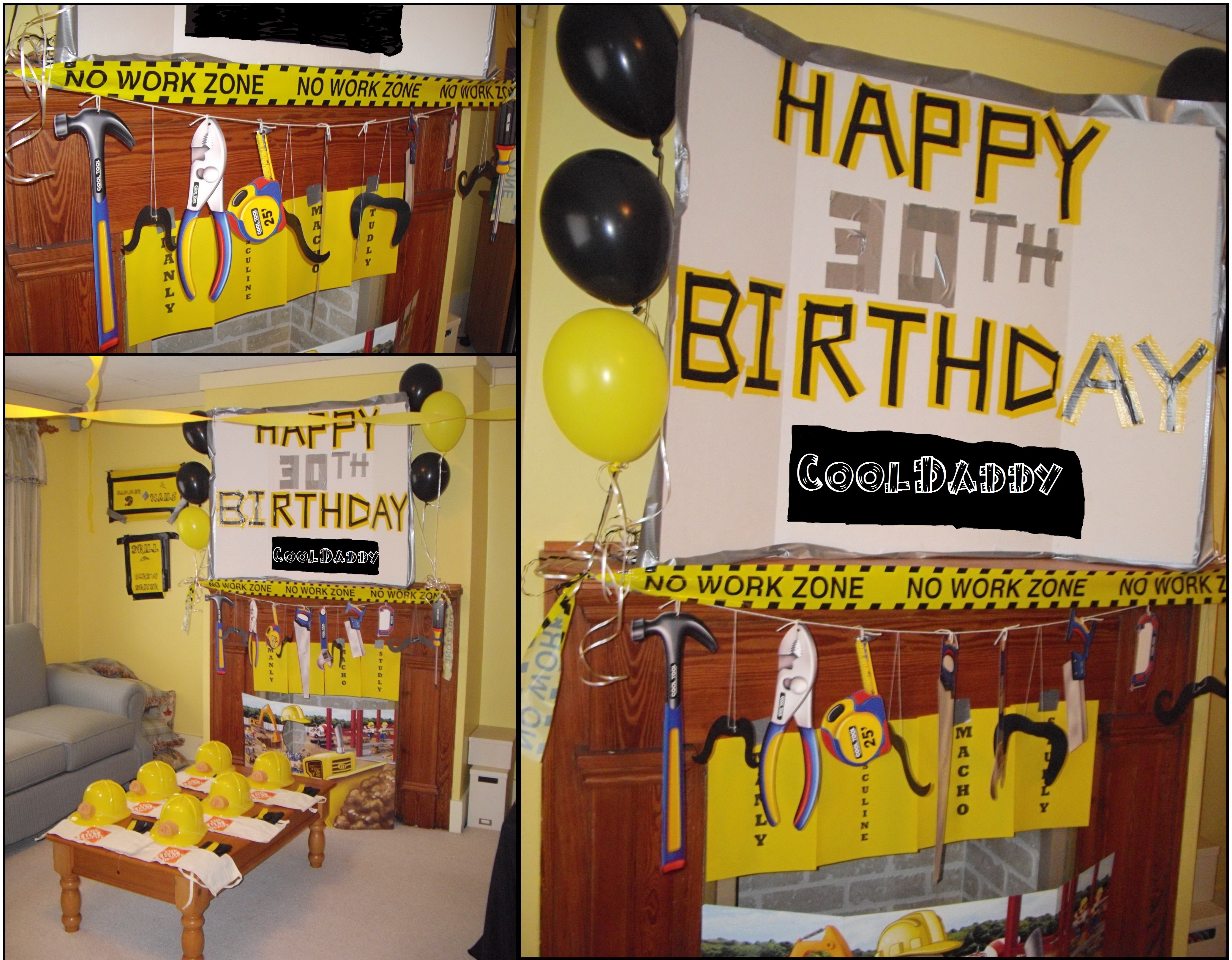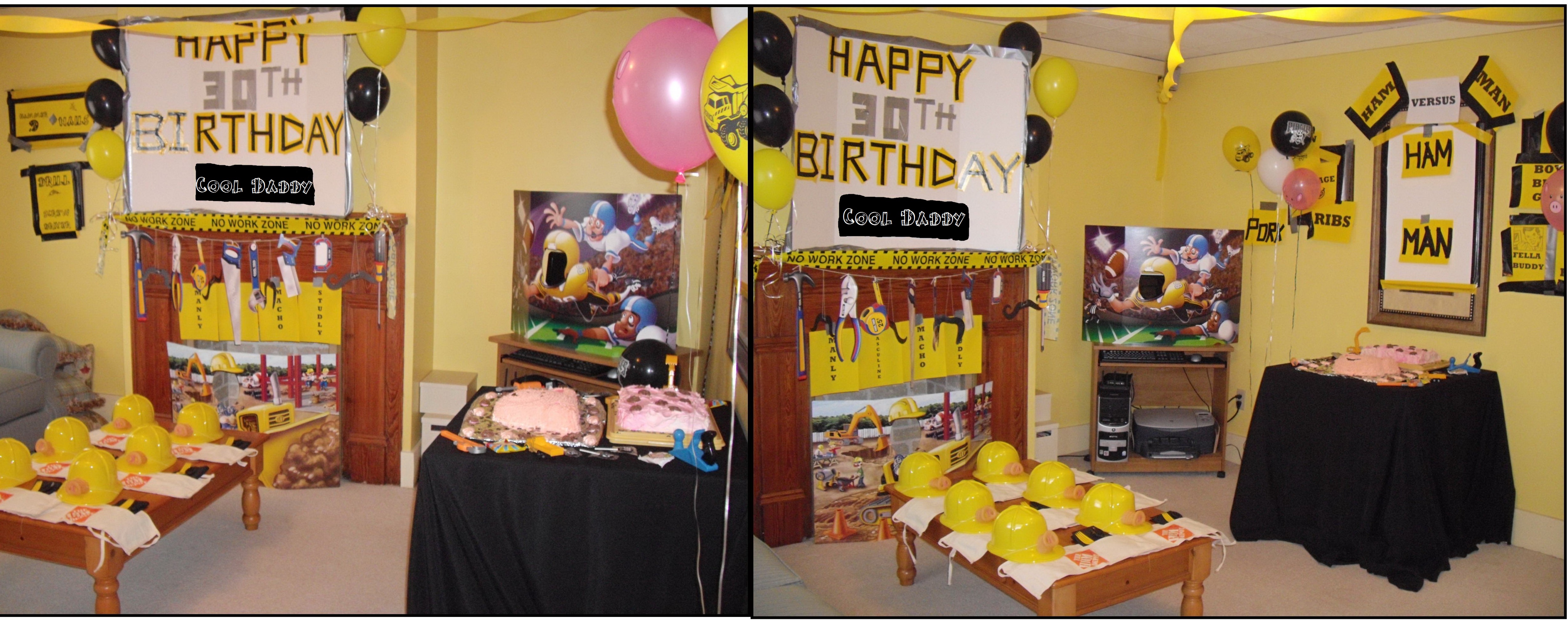 Here are the door ways clad with “work zone” tape that reads “No Work Zone” and “Warning: 30th Birthday Party in Progress”. My man is such a hard worker it was nice for him to have a “no work zone” for a day (But only for a day…then it’s back to work, buddy!).