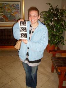 Eleven days later on November 16, 2008 I was at church and I just felt weird. I was light headed, dizzy, and woozy, I didn’t know what was going on. My period was due that Thursday and I thought maybe I was having some period symptoms, although I’d never experienced anything like it before. When we got home from church my husband left for work and I was going to head over to my mom’s house. The weird feeling was still there and I just had to take a pregnancy test so that I could prepare myself if my period was coming. I took the pregnancy test and it looked like it was negative. Then I looked again, really close, and I could see a very faint second line! I called my husband, who was excited, but because the line was so faint he thought it might be a false positive. We tested again on Tuesday and on Thursday, both positive, and my period never came. We were pregnant! We never went on Clomid or had the laparoscopy done.