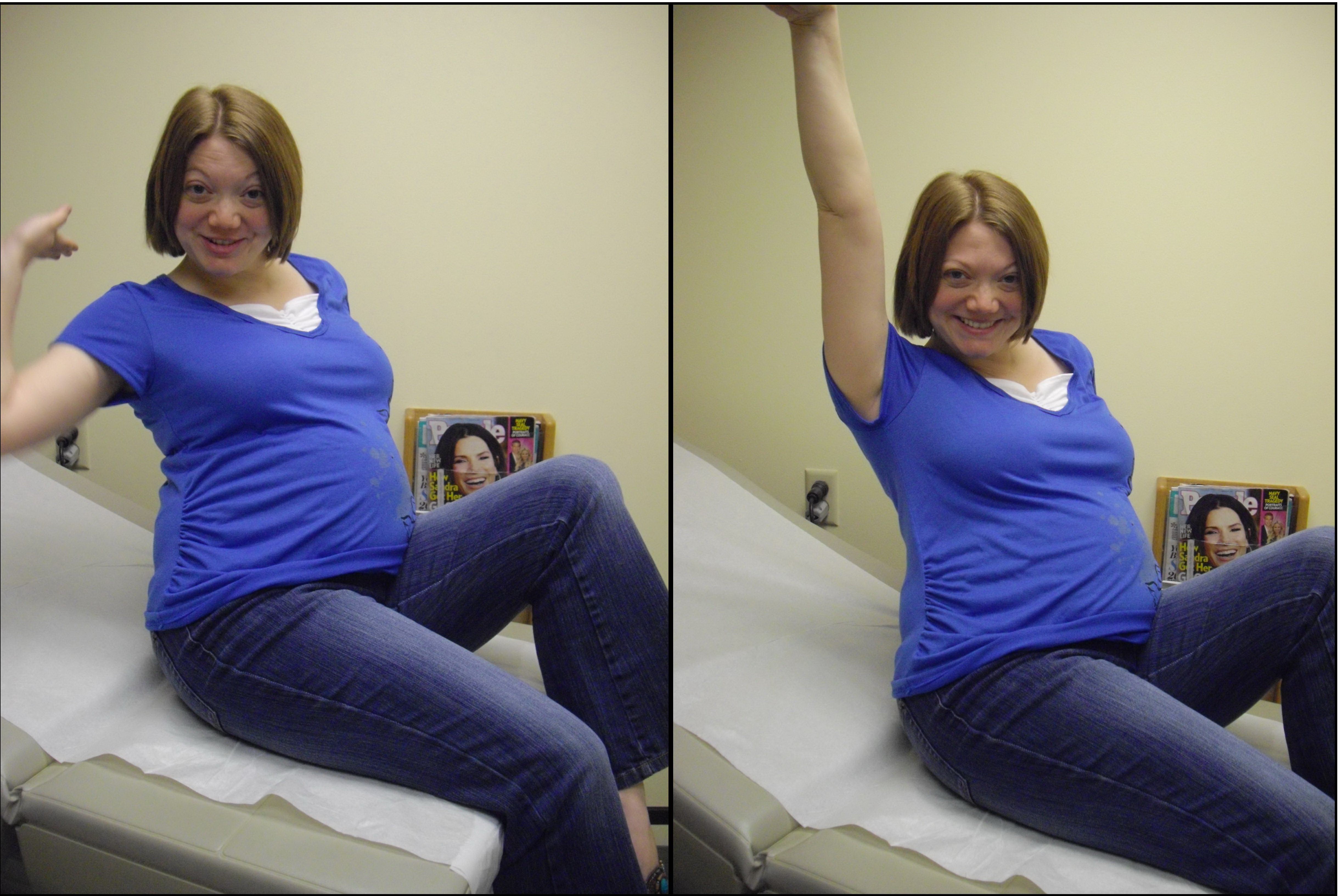 WHOO HOO! It’s a boy! Exciting stuff! Also, I love all of the pics you’ve taken of your pregnancy. I’m impressed! I did the weekly sign thing with my first, and with my second kid, the weekly sign thing turned more into a hope instead of a reality. And how’d you take the pic at the OB? Did you set the timer? Or make the nurse take it? 😀