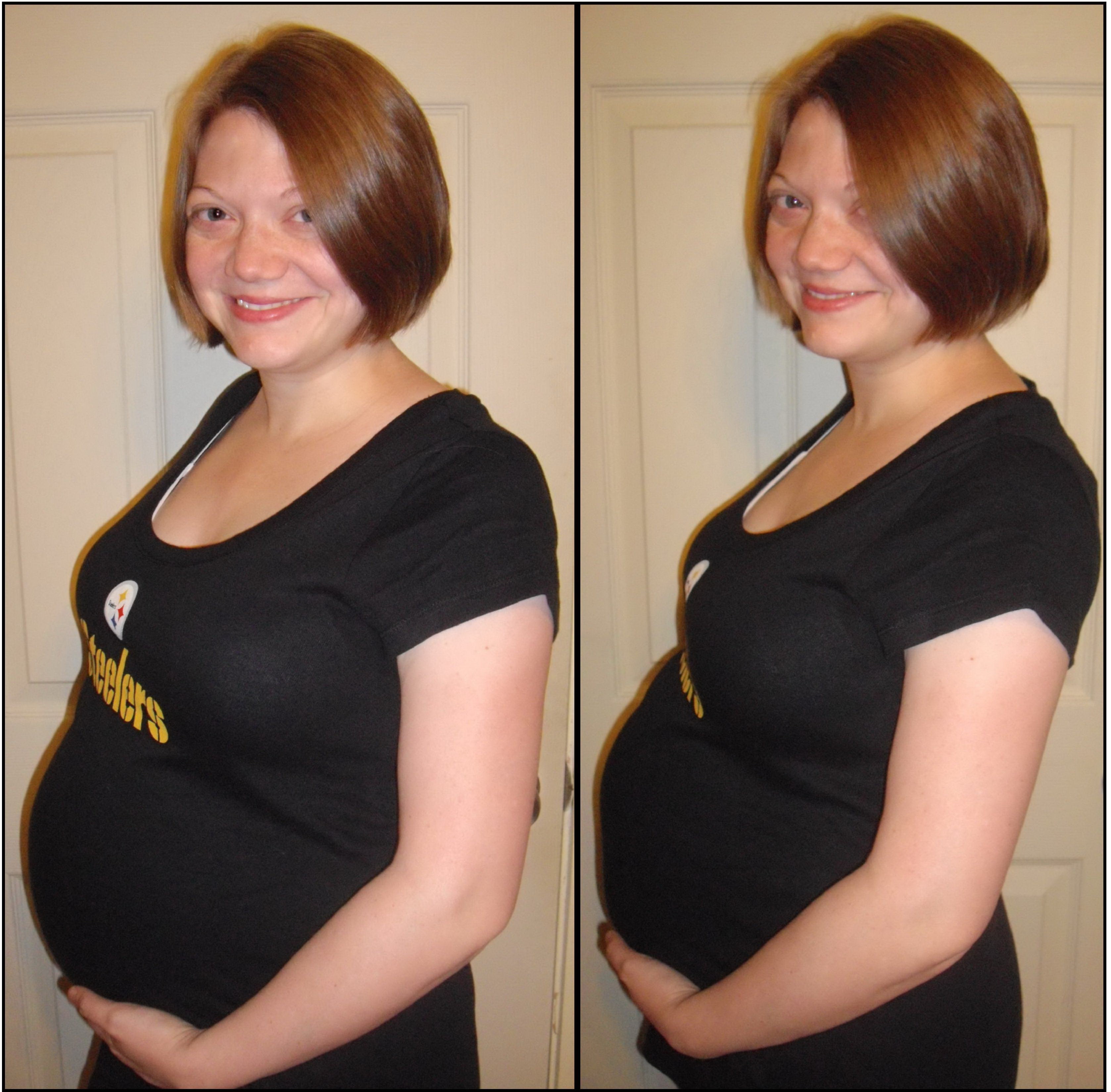 At my 24 week appointment I wasn’t thrilled with my 7 pound weight gain, although no one seemed concerned with it. I started doing some prenatal exercise dvds. In the past four weeks I’ve done 8 days of prenatal aerobic, 5 days of prenatal sculpting/strength, and 5 days of prenatal yoga. I can only work out once Adaline is in bed so I don’t have a real schedule going yet, but my goal is to do aerobics 5 days a week and strength and sculpting 3 days a week. For weeks now my weight has stayed the same (although my belly is definitely growing) but all of the sudden yesterday I weighed in 5 pounds heavier than the rest of the month! Seriously, 5 pounds in one day? I hope my scale’s just wonky.