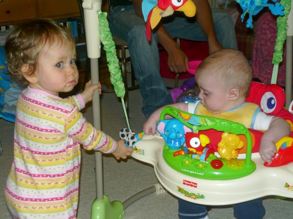 Then we got out Adaline’s old jumperoo to pass on to her little cousin.
