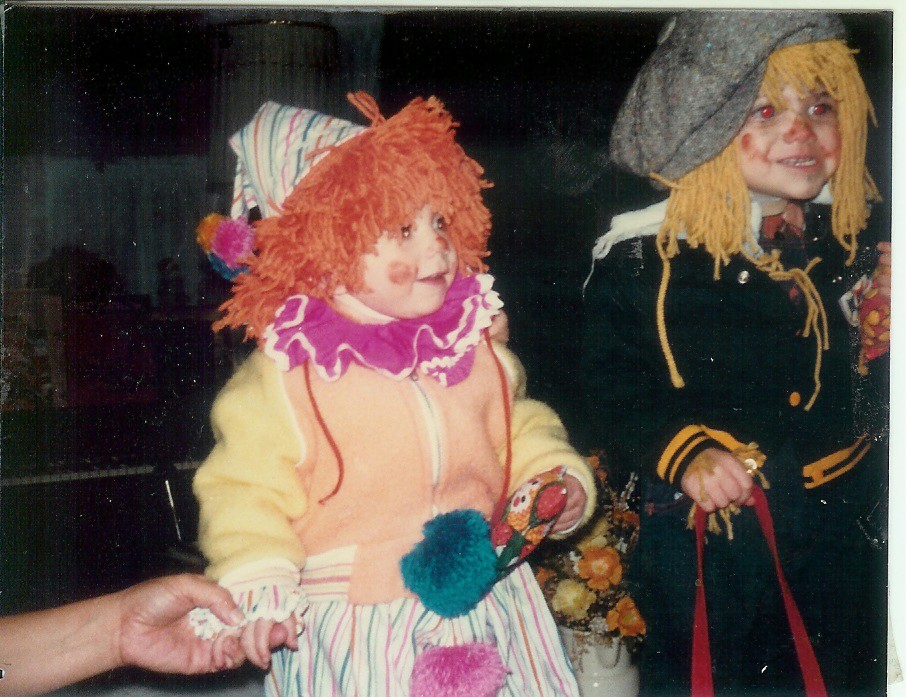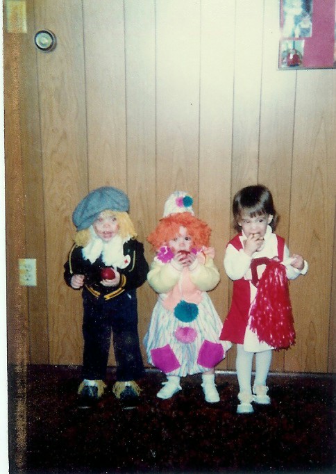 I was too little to remember anything about this. I think this was my first time ever going Trick or Treating. I was just over two and my sister was just shy of one. I was a scarecrow, my sister was a clown, and my cousin was a cheerleader.